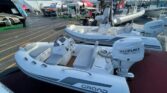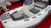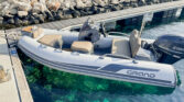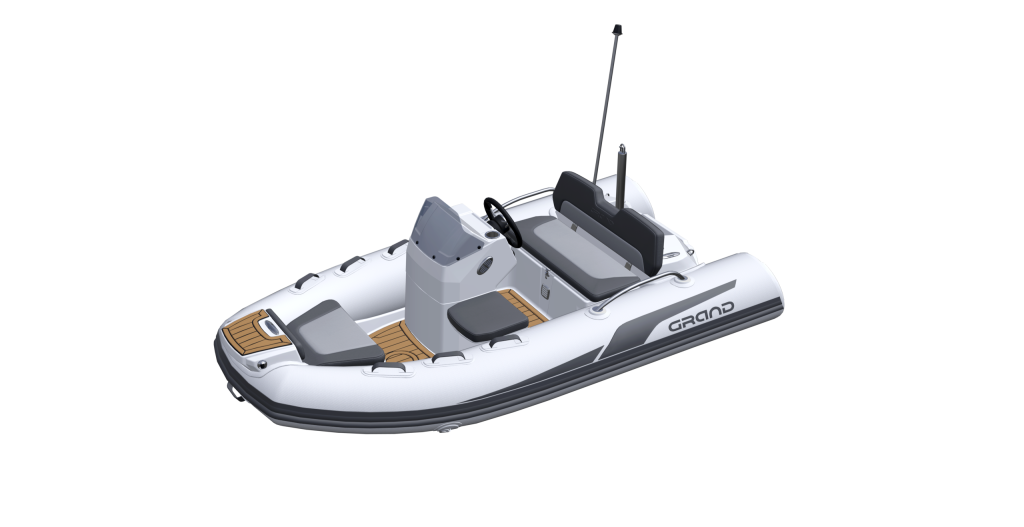 The G340, with it’s smooth lines and ergonomic layout have put itself in the forefront of popularity. Seating 5 people with ample storage below deck makes the Grand G340 the perfect yacht tender for those who want to stay in the 11′ dinghy size and 620 lbs while still having a deluxe luxury tender. Rigged with a 40hp, the G340 has more than enough power to do what you want to do.