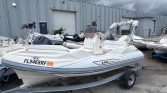 Pre-Owned 2017 ZAR 49 SL in good condition with Suzuki 90, Garmin 9″ GPS/Chartplotter, Sounder with transducer, Fusion Stereo System with 4 speakers, Swim platform extensions with integrated swim ladder, Plasdeck Faux Teak, Overturning stainless steel arch with bimini sun shade to arch.