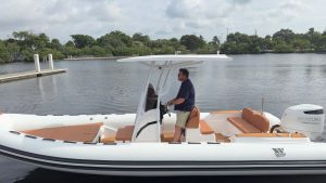 The Tiger Marine 740 PL is stocked with hypalon tube. SeaDeck faux teak, Silvertex cushion set, ski-pole, Nav lights, Bilge Pump, Battery system with cutoff switch,  Fiberglass T-top with aluminum frame. SS rod holders. SS cup holders, SS swim ladder. Stand-up drivers seat with aft facing seat with arm rest, LED deck lights, Swim platforms with Swim Ladder.